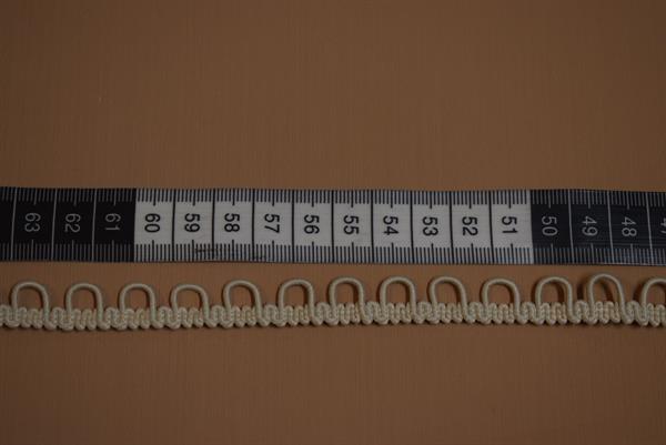 Beskrivelse: Trensebånd med elastiske trenser. Båndet hvorpå trenserne sidder er fast. Afstanden mellem trenserne er ca. 3-4mm.